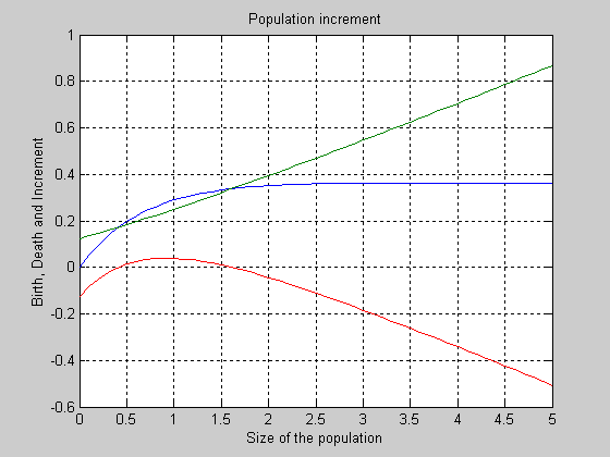plot(N,Birth,N,Death,N,Increment),grid,xlabel('Size of the population'),...