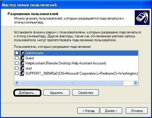 Настройка pptp сервера в ОС Microsoft Windows XP