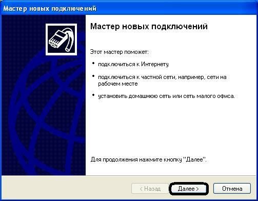 В окне мастера сетевого подключения нажмите кнопку Далее.