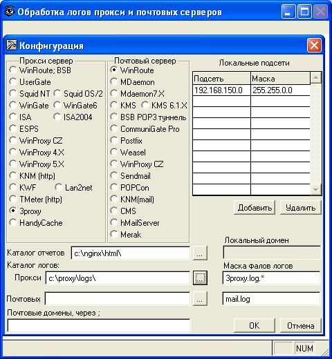 Работает с почтовыми логами WinRoute, MDaemon, Kerio Mail Server, CommuniGate Pro, Postfix, Weasel, WinProxy CZ, POPCon, Courier Mail Server, hMailServer, Merak (new!).