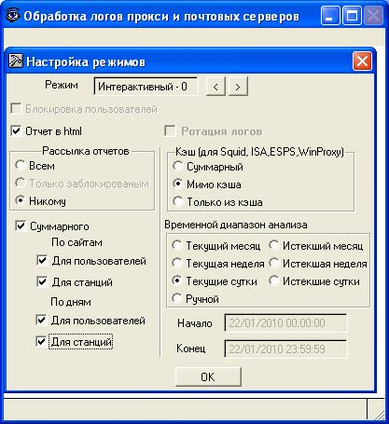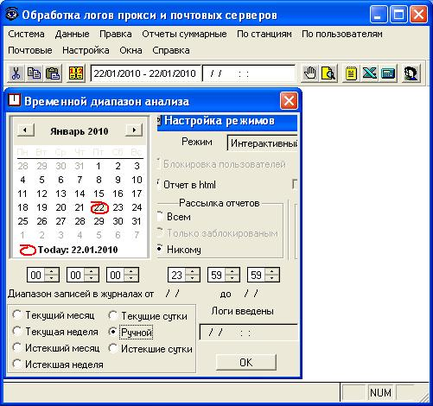 При создании программы была принята концепция накопления лога в базе данных, что позволяет вводить лог любыми порциями и разнести процедуру ввода и анализа по времени.