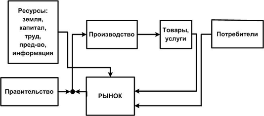И, наконец, последний «кубик» экономической системы назовем правительством, под которым будем понимать все органы власти (законодательную, исполнительную и судебную) как на верху, так и на местах, а также различные государственные контролирующие организации (Счетная палата, Госприроднадзор и т.д.), которые регулируют экономическую деятельность.