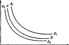 НЕЦЕНОВЫЕ ФАКТОРЫ смещают саму кривую AD совокупного спроса либо вправо (AXD{), когда спрос увеличивается, либо влево (A2D2)> когда он уменьшается (рис. 15).