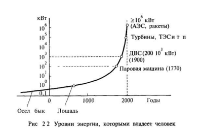Из приведенного выше видно, что XX столетие ознаменовалось потерей устойчивости в таких процессах, как рост населения Земли и |его урбанизация. Это вызвало крупномасштабное развитие энергети
