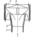 Для постоянного воздухообмена, требуемого по условиям поддержания чистоты воздуха в помещении, необходима организованная вентиляция. Организованная естественная вентиляция может быть вытяжной без организованного притока воздуха (канальная) и приточно-вытяжной с организованным притоком воздуха (канальная и бесканальная аэрация). Канальная естественная вытяжная вентиляция без организованного притока воздуха (рис. 9.1) широко применяется в жилых и административных зданиях. Расчетное гравитационное давление таких систем вентиляции определяют при температуре наружного воздуха + 5°С, считая, что все давление падает в тракте вытяжного канала, при этом сопротивление входу воздуха в здание не учитывается. При расчете сети воздуховодов прежде всего производят ориентировочный подбор их сечений, исходя из допустимых скоростей движения воздуха в каналах верхнего этажа 0,5...0,8 м/с, в каналах нижнего этажа и сборных каналах верхнего этажа — 1,0 м/с и в вытяжной шахте — 1...1.5 м/с.Для увеличения располагаемого давления в системах естественной вентиляции на устье вытяжных шахт устанавливают насадки-дефлекторы. Наибольшее распространение получили дефлекторы тип? ЦАГИ (рис. 9.2), которые представляют собой цилиндрическую обечайку, укрепленную над вытяжным патрубком, заканчивающимся плавным диффузором. Поток ветра, обтекая обечайку, создает вокруг большей части ее периметра разряжение, обеспечивающее подсос воздуха из вытяжного патрубка. Разрежение, создаваемое дефлектором, и количество удаляемого воздуха зависят от скорости ветра и могут быть определены с помощью номограмм.