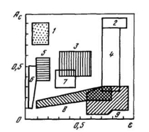 Системы терморегулирования, в которых тепловой режим поддерживается на основе терморегулирующих покрытий, широко используются на ИСЗ небольшого размера с незначительным тепловыделением. На рис. 5 приведены данные по Ас и Е терморегулирующих покрытий и материалов на срок полета до 1 года [2]. В тех случаях, когда тепловыделение в корабле меняется в широких пределах или при необходимости обеспечения температуры в узком диапазоне, применяется активное управление внешним теплообменом за счет экранов или жалюзи. Жалюзи использовались на небольших спутниках "Электрон-1", "Электрон-2", на первых пилотируемых кораблях "Восток" и др.