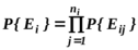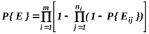 Подсистемой И – ИЛИ называют ту часть системы ЧМС, которая соединяет подсистемы ИЛИ в подсистему И. Отказ подсистемы И – ИЛИ есть ЧП И – ИЛИ. На рис. 11.22 параллельно соединенные компоненты Ej (i = 1, 2,..., m), образующие подсистему И, представляют собой подсистемы ИЛИ, состоящие из последовательно соединенных компонентов Eji (j = 1, 2, ..., ni).