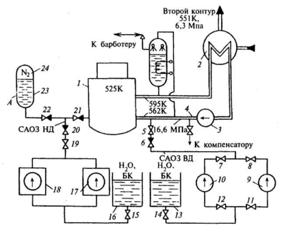 Рис. 11.9. Примерная схема – вариант аварийного охлаждения зоны ядерной энергетической установки
