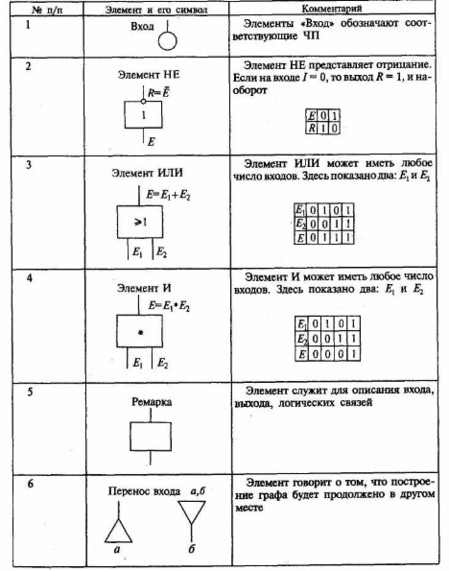 Таблица 11.6. – Элементы и символы, используемые для построения дерева причин потенциального ЧП
