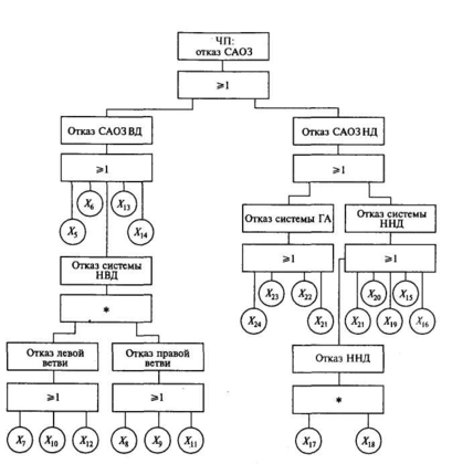 Рис. 11.10. Дерево причин потенциального ЧП – отказ САОЗ ЯЭУ