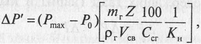 где Рmax - максимальное давление взрыва стехиометрической газовоздушной или паровоздушной смеси в замкнутом объеме; определяется экспериментально или по справочным данным, при отсутствии данных допускается принимать равным 900 кПа; Р0 – начальное давление, кПа; допускается принимать равным 101 кПа; mт – масса горючего газа или паров легковоспламеняющейся или горючей жидкости, поступивших в результате аварии в помещение, кг; Z – доля участия взвешенного дисперсного продукта во взрыве;