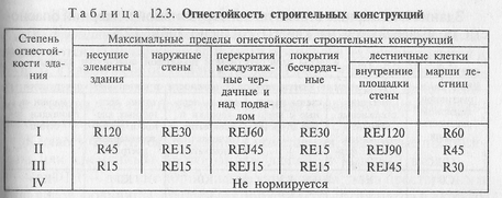 Степень огнестойкости здания определяется огнестойкостью его конструкций в соответствии с табл. 12.3 (СНиП 21-1--97).