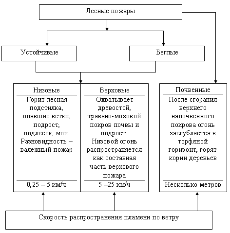 101. Характеристика лесного пожара, как подразделяются лесные пожары в зависимости от вида сгораемого материала и характера горения