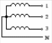 Заземленная точка называется нулевой точкой. Можно получить только линейные напряжения