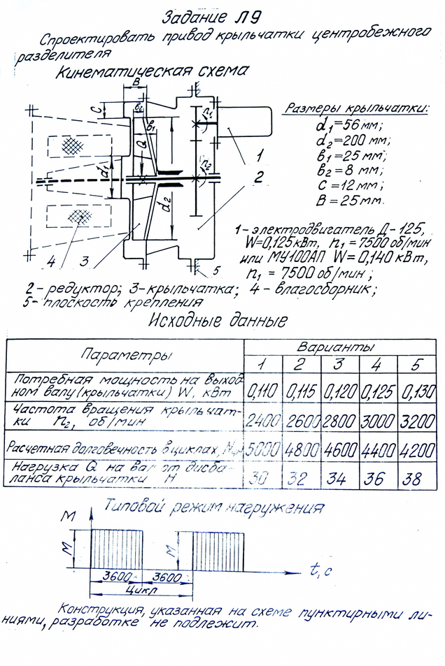 Сборочный чертеж с подробной конструкторской проработкой. Геометрические параметры крыльчатки указаны на кинематической схеме.