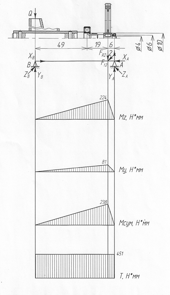 Вывод: Зубья шестерни и колеса прочны при действии контактных напряжений.