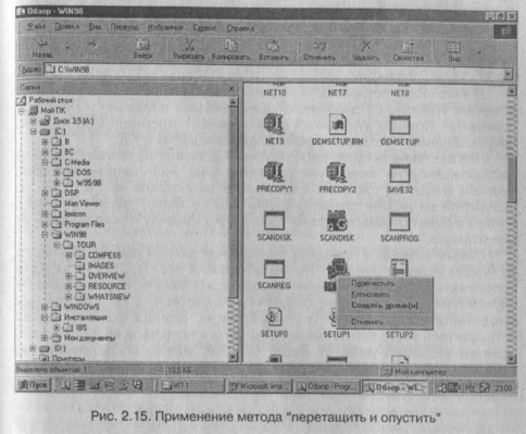 В процессе перемещения, копирования или переименования объектов Windows 98 запоминает выполняемые операции и может их отменить. Причем Windows 98 запоминает последнее действие, предпоследнее, предшествующее предпоследнему и т.д.