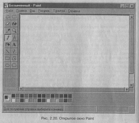 Входящий в комплект поставки Windows 98 графический редактор Paint имеет множество недостатков и ограничений по сравнению с полнофункциональными графическими пакетами, такими, как CorelDraw, но он прекрасно подходит для создания и редактирования простых рисунков. Для запуска программы выберите команду Пуск \ Программы | Стандартные \ Paint. Если команды Paint нет в меню Стандартные, то это означает, что редактор Paint не был установлен. В таком случае откройте папку Панель управления и воспользуйтесь средством Установка и удаление программ. (После открытия окна установки и удаления программ перейдите на вкладку Установка Windows, выберите группу компонентов Стандартные, щелкните на кнопке Состав и установите флажок напротив компонента Paint. После того, как вы закроете все окна, щелкая на кнопках OK, Windows 98 установит редактор Paint).