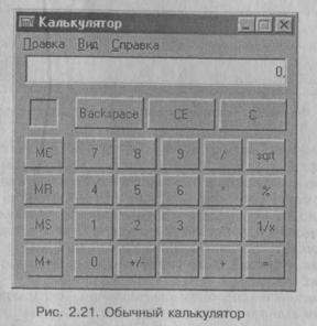 Для запуска программы Калькулятор выберите команду Пуск | Программы | Стандартные | Калькулятор, после чего появится окно, изображенное на рис 2.21.