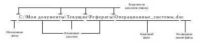 Хранение файлов организуется в иерархической структуре, которая в данном случае называется файловой структурой. В качестве вершины структуры служит имя носителя, на котором сохраняются файлы. Например, А: или В: обозначают дискету, C:,D: и т.д. – жесткий диск.