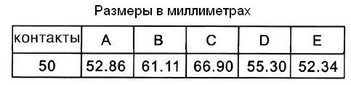 В качестве разьемного соединителя выберем разъем D-sub на 50 контактов со шлейфом из поливинилхлорида (ПВХ). Количество контактов выбирается из соображений, что на каждый из 24 каналов будет приходиться 2 контакта (сигнал и земля) и еще 2 контакта, подающих питание к схеме. В целях обеспечения стабильности работы схемы вход и выход схемы будут разнесены на противоположные концы печатной платы, на которой будут располагаться все 24 канала блока. Для обеспечения большей степени унификации расположим на входе и выходе схемы одинаковые разъемы D-sub. На рисунке 5 изображен рассматриваемый разъемный соединитель в схематическом виде. Также, в таблице 3.7 приведены его габаритные размеры.