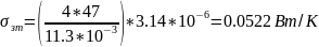 σзт=(nλ/l)Sср, где λ=47 Вт/м*град – коэффициент теплопроводности материала бобышки (сталь), n=4 – число бобышек, l=11.3*10^(-3) м – высота бобышек, Sср=π*(rmax-rmin)^2=π*(3.75-2.75)^2=π мм^2=π*10^(-6) м^2 – средняя площадь сечения бобышек.