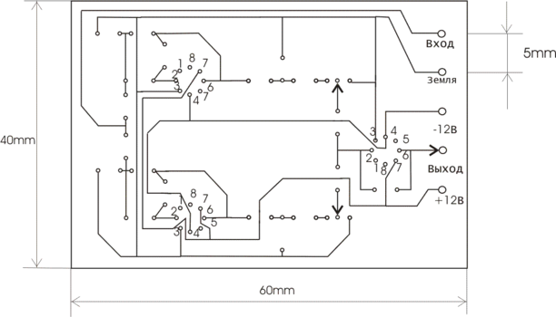 На рисунке 3 можно увидеть топологию печатной платы полосового фильтра.