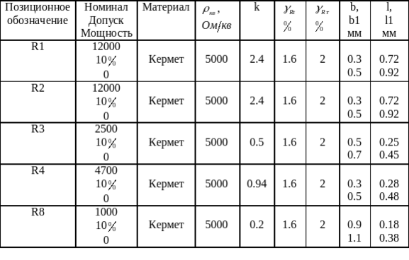 4.1 Расчёт тонкоплёночных резисторов