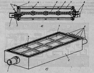 Рис. 3.18. Конструкция модуля СВЧ: а — разрез конструкции;