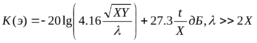 K(э)=-20lg(3.3D/λ) +32t/D, дБ; λ>>πD (6.22)