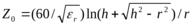 Z = 60 ln (1,27+h/2r)/√εr Ом