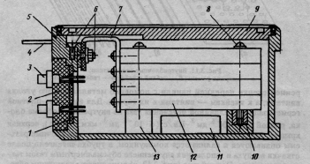 11 — блок питания; 12 — функциональная ячейка; 13 — бобышка