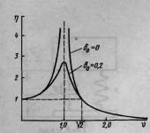 где δ0=δ/ω0 — коэффициент затухания ; v=ω/ω0 — коэффициент частотной расстройки или частотное отношение;