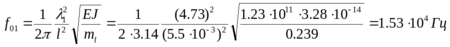 Частота свободных колебаний балки основного тона