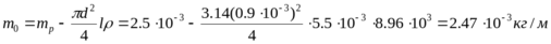 ml = m0+(1/l) mKk1=5,69·10-3 + 2,47·10-3 ·0,52/5,5·10-3 = 0,239 кг/м .