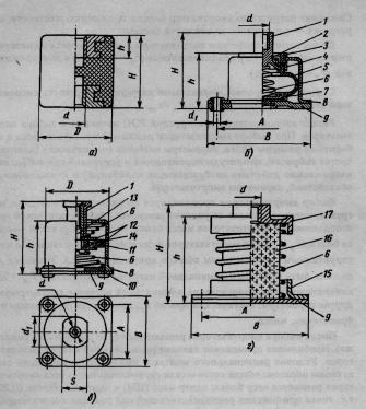 Рис. 4.23. Конструкция амортизаторов: а — «ножка» (АН);