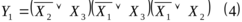 Сравнивая (2) и (1), убеждаемся, что она значительно проще: из первой импликанты исчез избыточный аргумент X3, из второй – X2, из четвертой X1, а третья импликанта вообще оказалась избыточной. Дальнейший анализ выделенных склеек в карте Карно (рис.5) показывает, что склейка (2), определяющая простую импликанту X3, полностью накрывается склейками (1) и (3), поэтому она является избыточной и исключается из состава логической функции и (2).