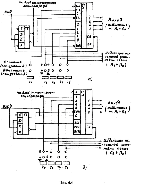 Схема декадного счетчика приведена на рис. 6.3, б.