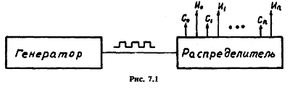 Схема распределителя сигналов (рис. 7.1) содержит устройство формирования параллельного кода и дешифратор. В качестве устрой-
