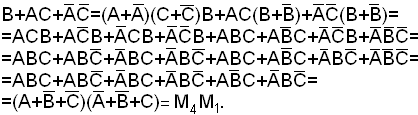 Аналогично при записи макстерма используется буква М с индексом, двоичная запись которого содержит 1, если соответствующая переменная входит в аналитическую запись макстерма в прямой форме, и 0, если в инверсной.