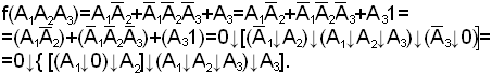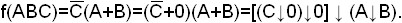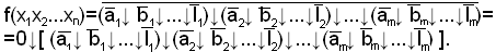 Таким образом, чтобы перейти от ДНФ к функции Пирса, необходимо все элементарные произведения заключить в скобки, а затем все знаки дизъюнкции и конъюнкции заменить знаком стрелки Пирса, взять инверсии от всех переменных, заключенных в скобках, и общую инверсию от полученного выражения А записью 0↓А или А↓0. Аналогично все инверсии переменных заменить через выражение