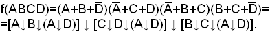 Таким образом, чтобы перейти от КНФ к функции Пирса, следует заключить в скобки все элементарные суммы, затем все знаки дизъюнкции и конъюнкции заменить знаком стрелка Пирса и выразить инверсные переменные через операцию стрелка Пирса: