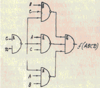 Однако число элементов «И-НЕ» в структурной схеме можно уменьшить, если вместо МДНФ функции использовать сокращенную ДНФ ее, т.е. ввести в выражение ДНФ функции обе необязательные импликанты: