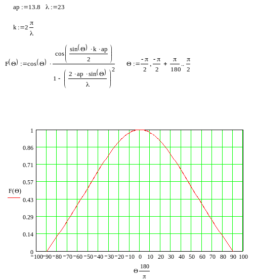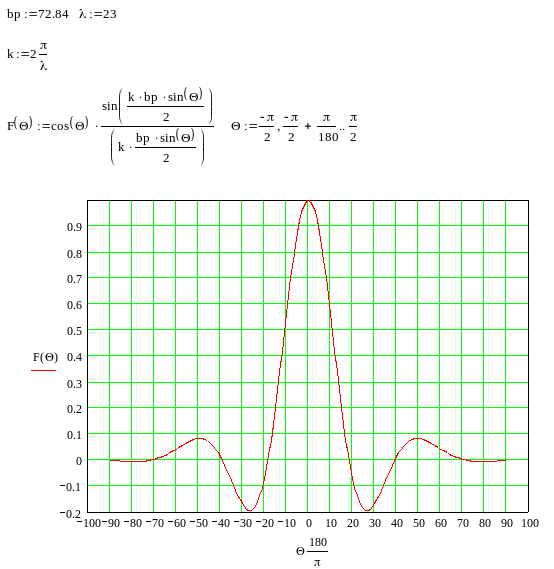 [6] – множитель решетки. Полагая решетку состоящей из одинаковых излучателей, можно представить ее характеристику направленности