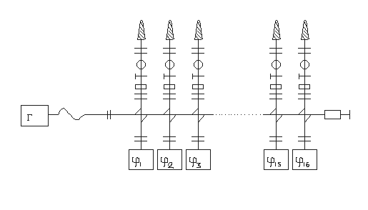 ыбираем схему с последовательным распределением мощности и параллельным включением фазовращателей (рис. 2.1.). В такой схеме потери в антенне складываются из потерь в одном фазовращателе и мощности, рассеиваемой в нагрузке питающего фидера. Распределение мощности производится с помощью направленных ответвителей.
