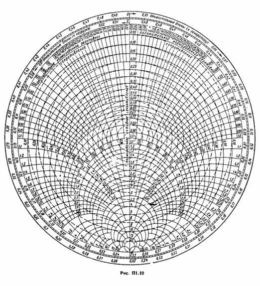 Для решения задачи согласования входного сопротивления вибратора с двухпроводной линией воспользуемся круговой диаграммой полных сопротивлений. На круговой диаграмме находим точку, соответствующую нормированному сопротивлению нагрузки