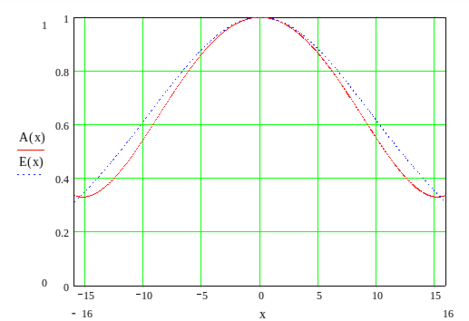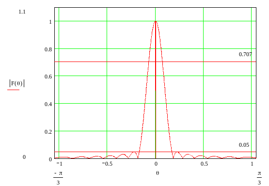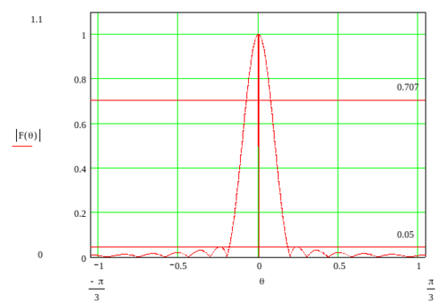 Диаграмма направленности зеркальной антенны может быть аппроксимирована следующей функцией: