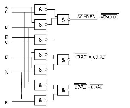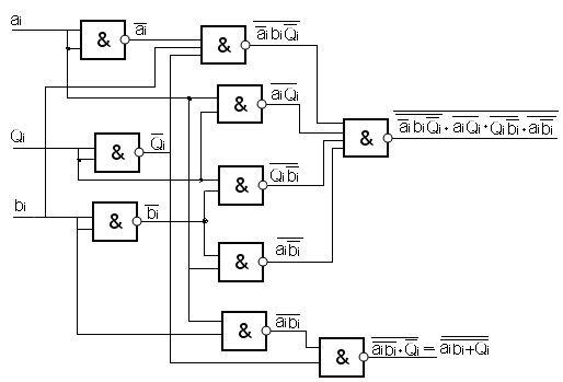 Реализация сумматора на элементах И-НЕ: