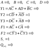 3. Построить временные диаграммы работы автомата в точках: A,B,С,Y1,Y2,Y3,ai,bi,ci,Si,Qi+1.