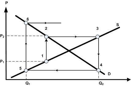 Рис. 3.1. Переход в новое устойчивое состояние на рынке